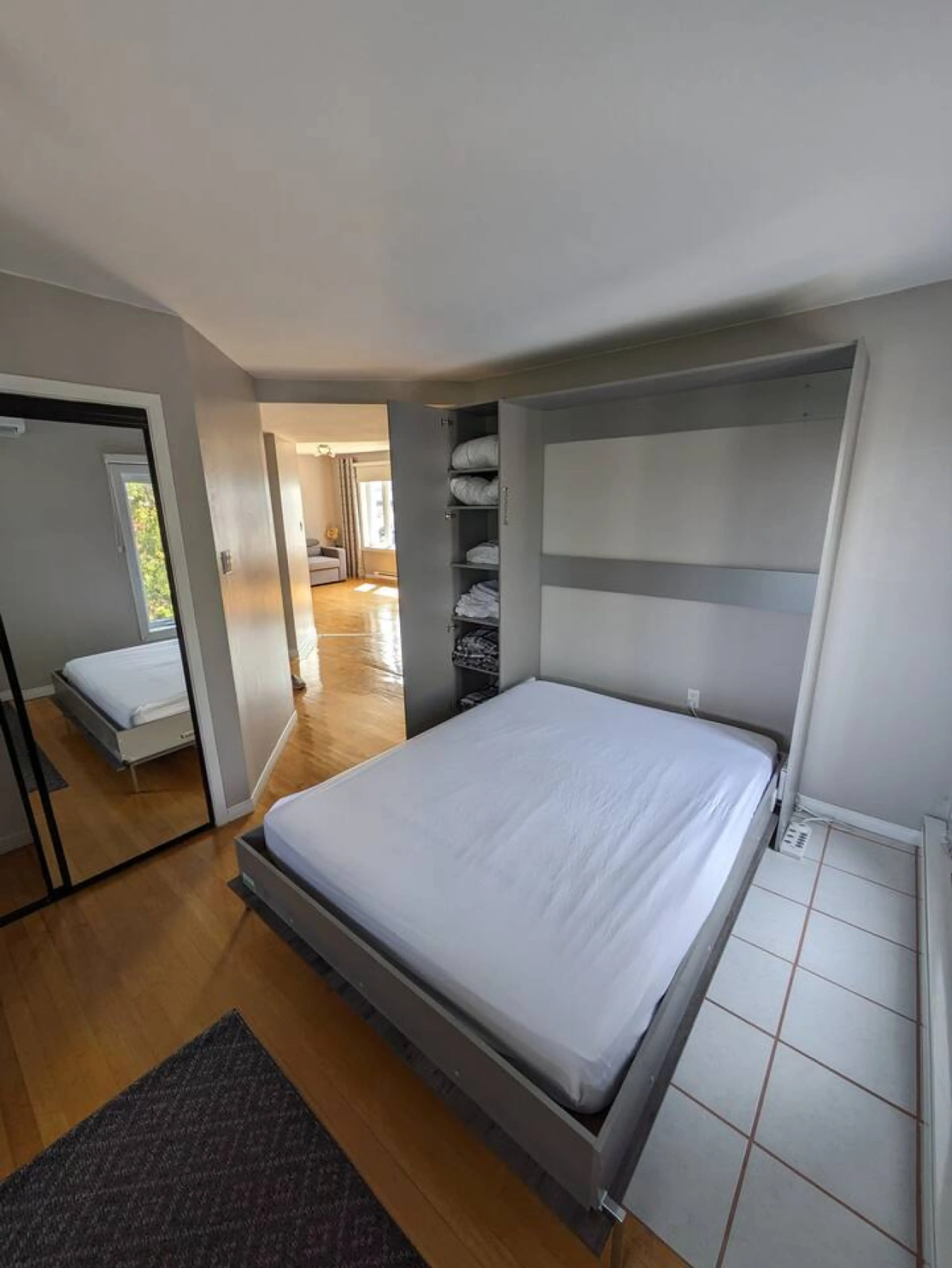 Welcome to our charming accommodation graced with abundant natural light and boasting a superb view of the shimmering Lake Saint-Jean. Our space features one private bedroom and a queen-sized murphy bed in the entrance, offering comfort for up to four guests. Equipped with all the amenities needed f...